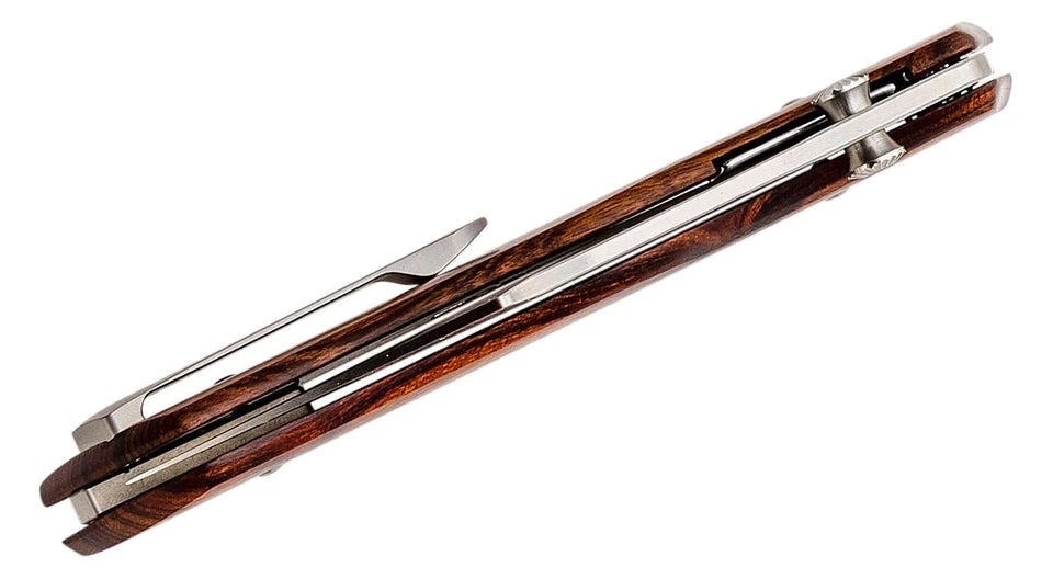 4.63" (11.76cm) closed. 3.25" (8.26cm) satin finish AR-RPM9 stainless blade. Brown wood handle. Thumb stud. Pocket clip. Boxed.