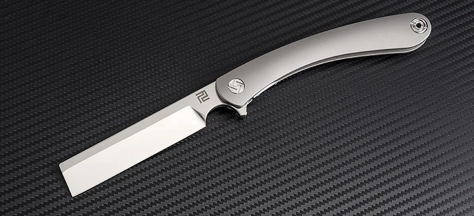 5.13" closed. 3.75" satin finish Bohler M390 stainless blade. Gray titanium handle. Extended tang. Pocket clip. Boxed.