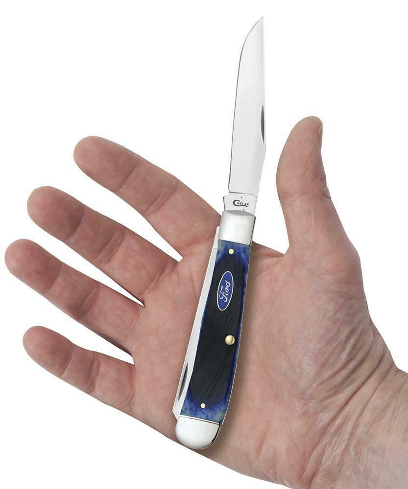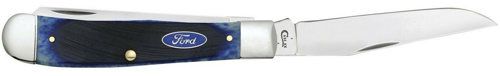 Case XX Ford Trapper Pocket Knife Stainless Steel Blades Blue Sawcut Bone Handle 14301