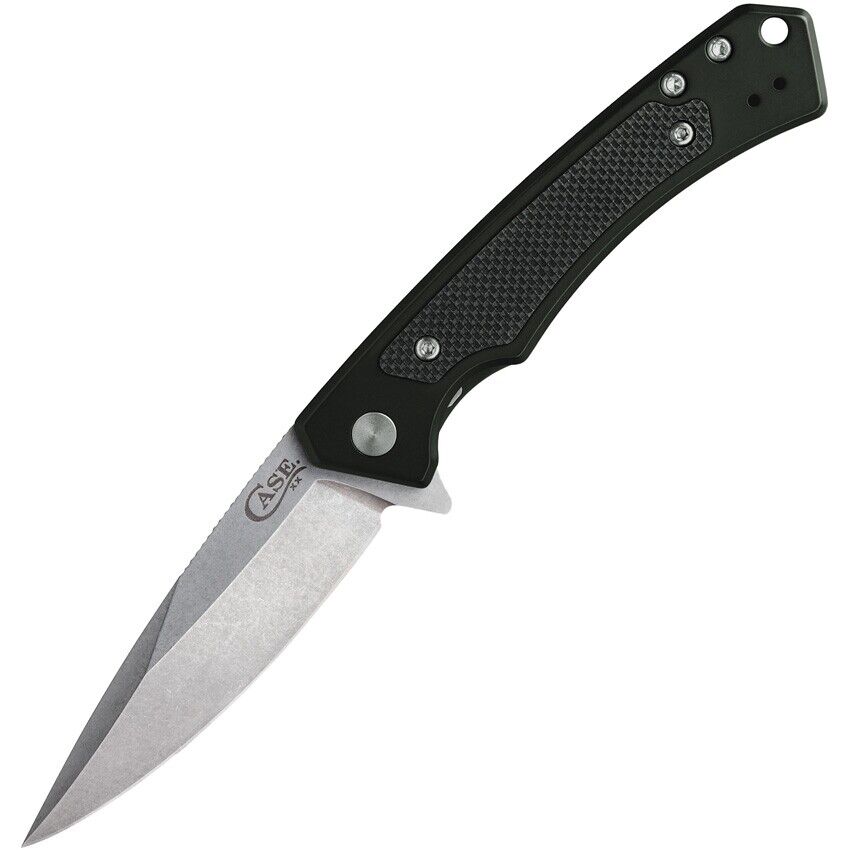 MARILLA pattern. 4.75" (12.07cm) closed. 3.75" (9.53cm) stonewash finish S35VN stainless blade. OD green aluminum handle with black G10 onlay. Lanyard hole. Pocket clip. Boxed.