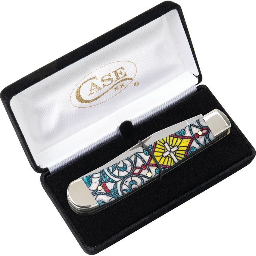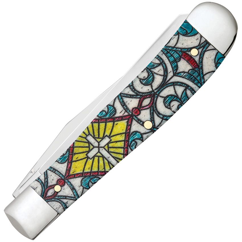 Case XX Trapper Pocket Knife Stainless Steel Clip/Spey Blades Stained Glass Color Wash Natural Bone Handle 38817