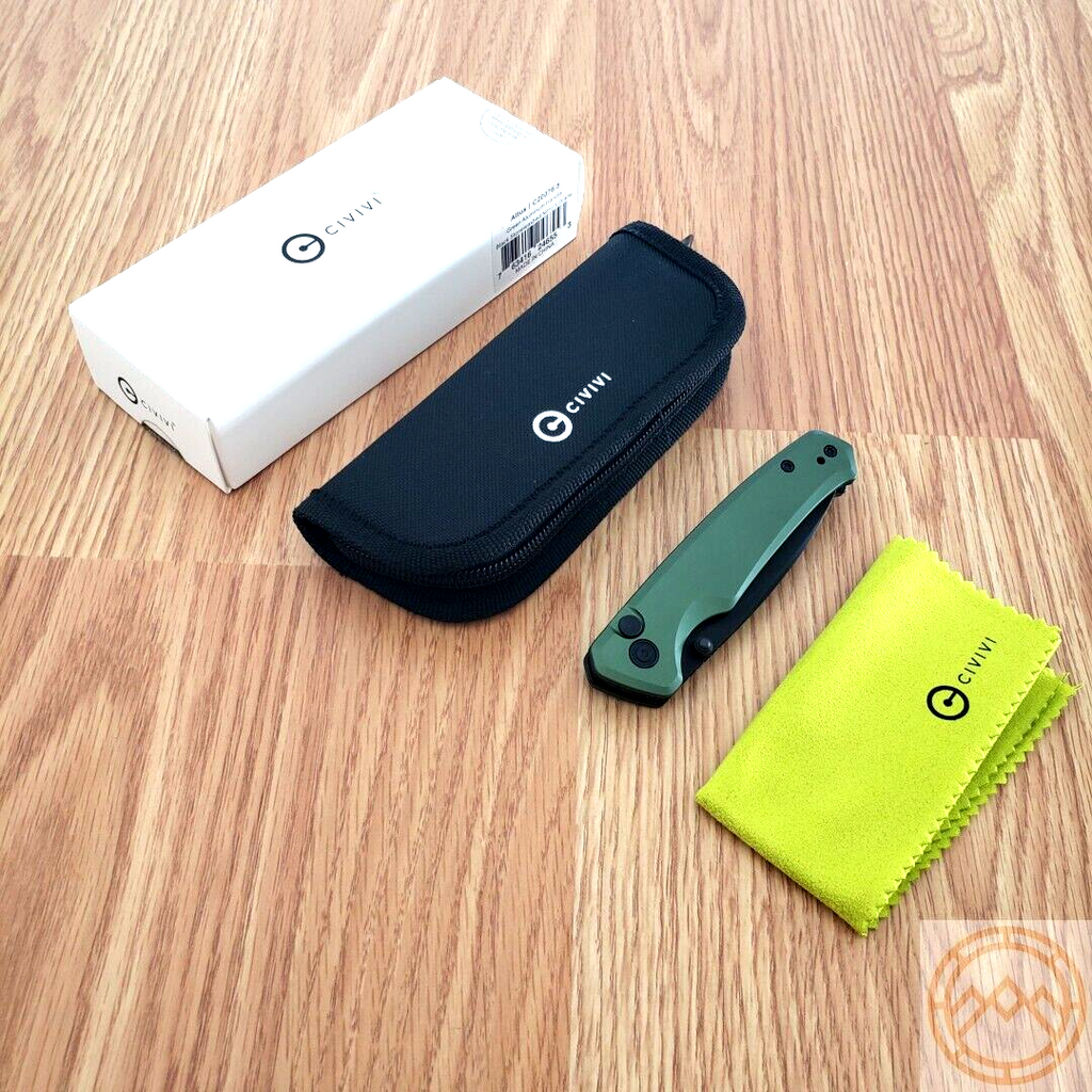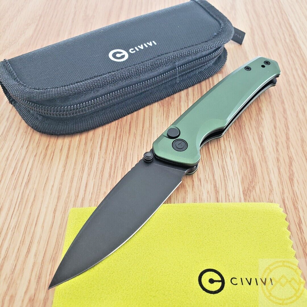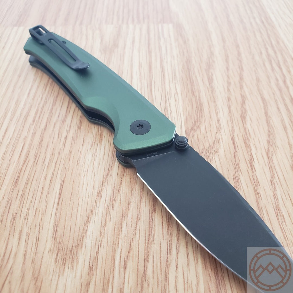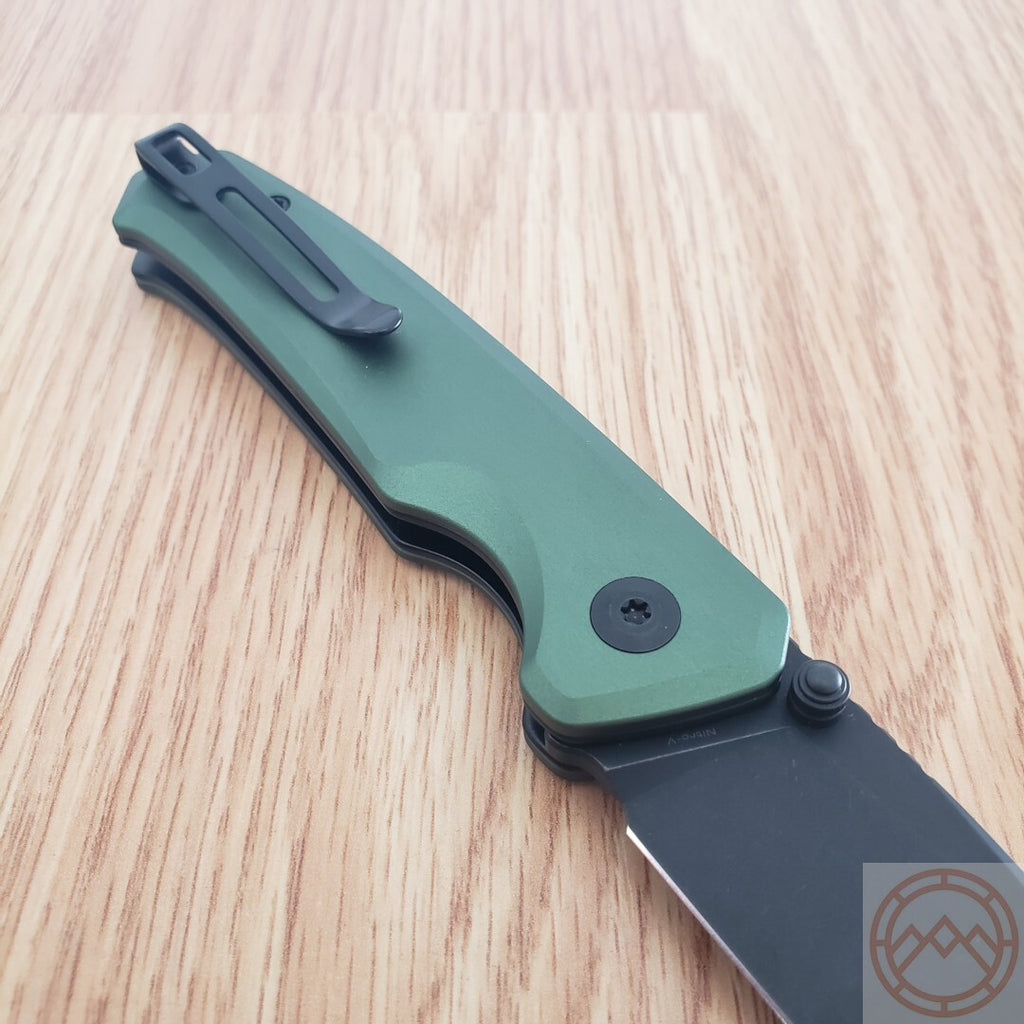Civivi Altus Folding Knife 3" Nitro-V Steel Drop Blade Green Aluminum Handle