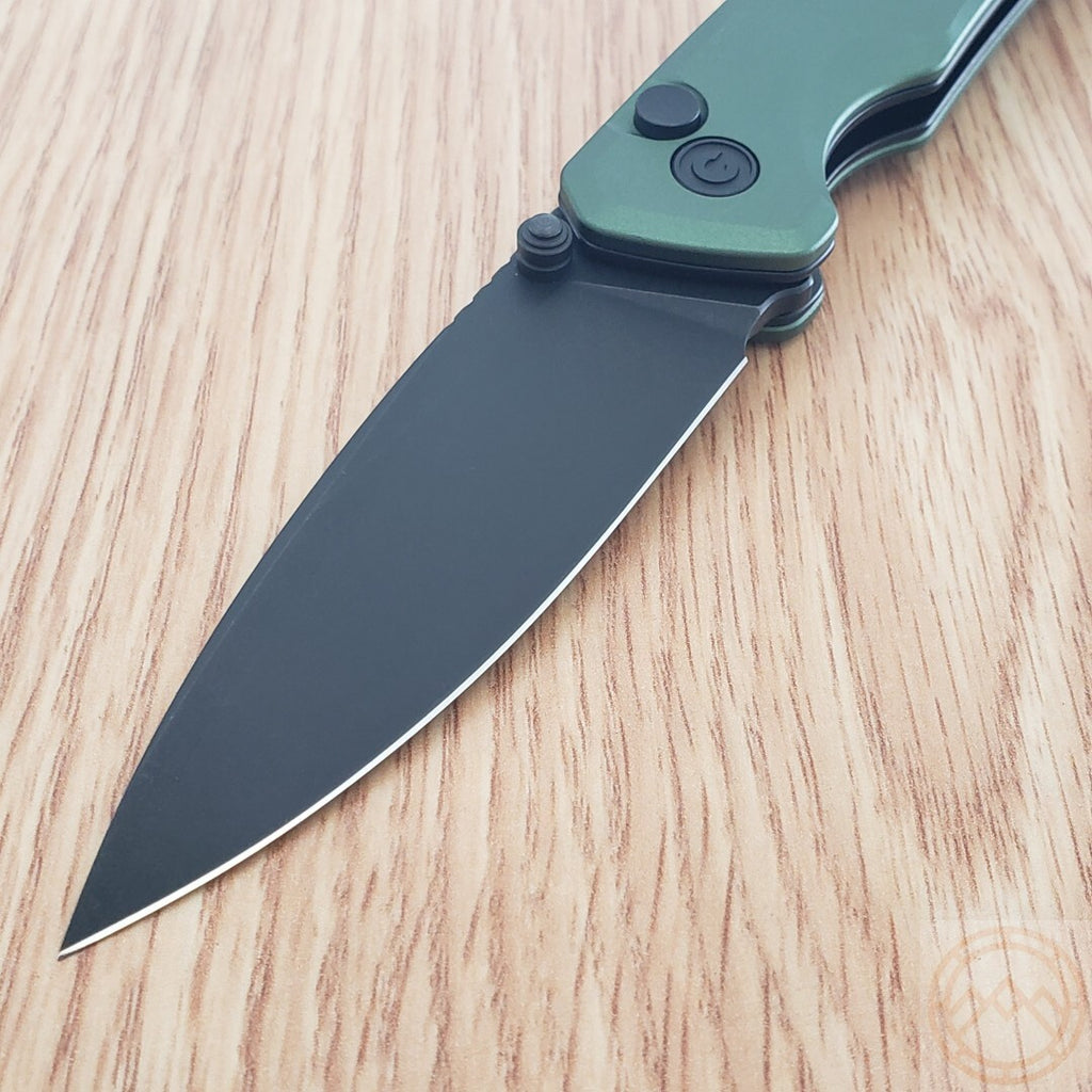 Blade Material: Nitro-V Blade Hardness: 58-60HRC Blade Grind: Flat Blade Finish: Black Stonewashed Blade Type: Drop Point Handle Material: Aluminum Handle Color/Finish: Green Liner Material: Stainless Steel Liner Color/Finish: Black