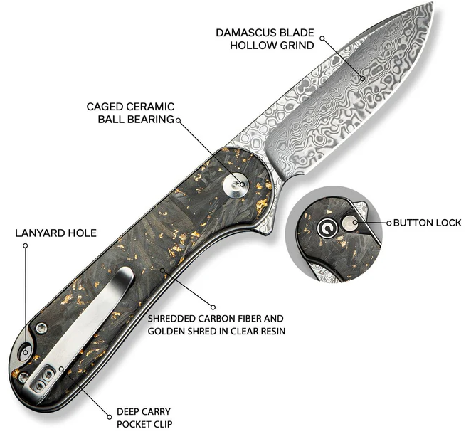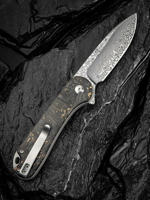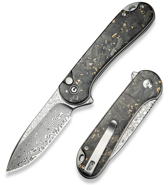 Civivi Elementum Folding Knife 3" Damascus Steel Blade Carbon Fiber Resin Handle