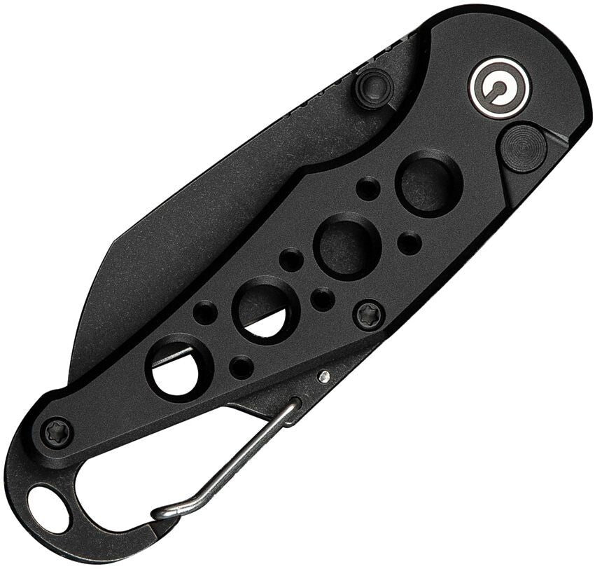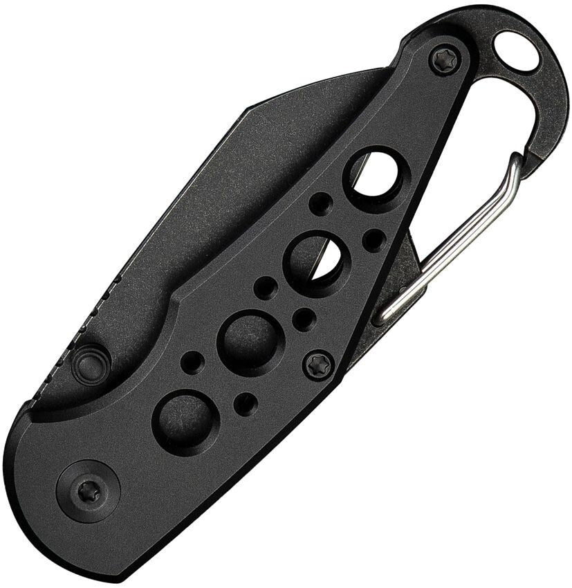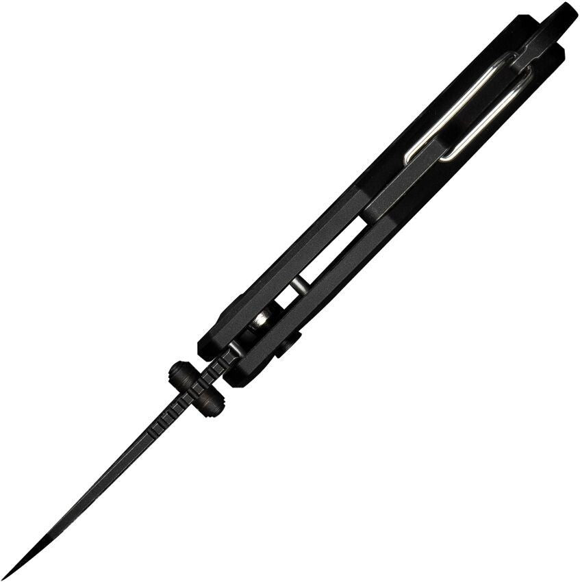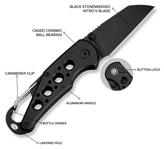 3.5" (8.89cm) closed. 2.25" (5.72cm) black stonewash finish Nitro V steel Wharncliffe blade. Black aluminum handle. Attachment clip. Bottle opener. Lanyard hole. Thumb stud. Boxed.