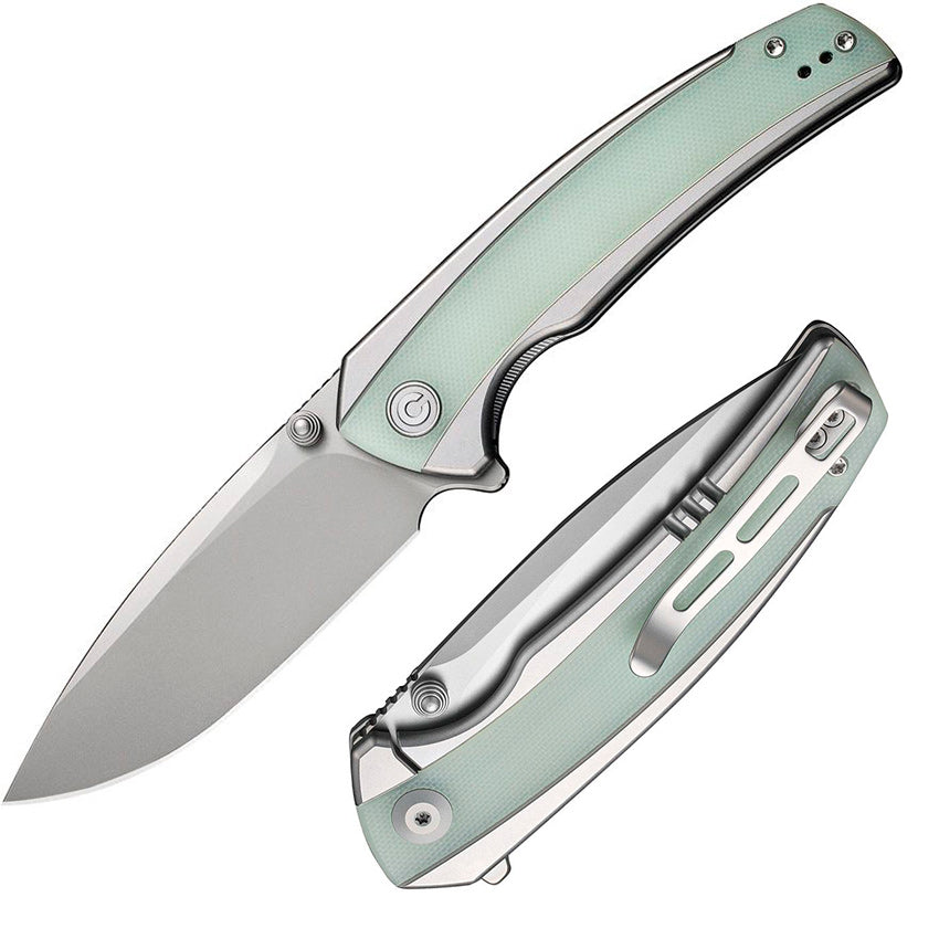 Civivi Teraxe Folding Knife 3.5" Nitro-V Steel Blade Stainless/Jade G10 Inlay Handle VC200362