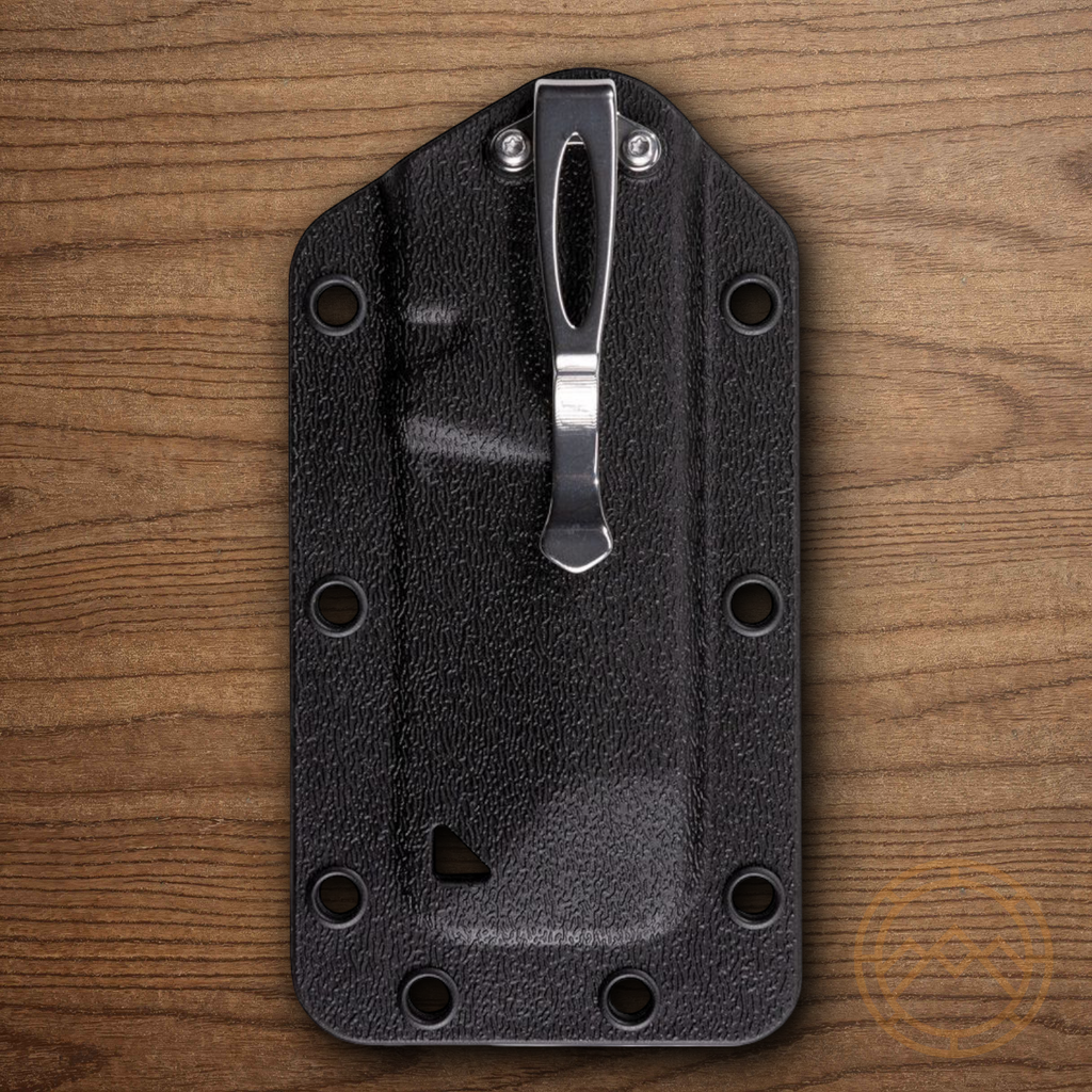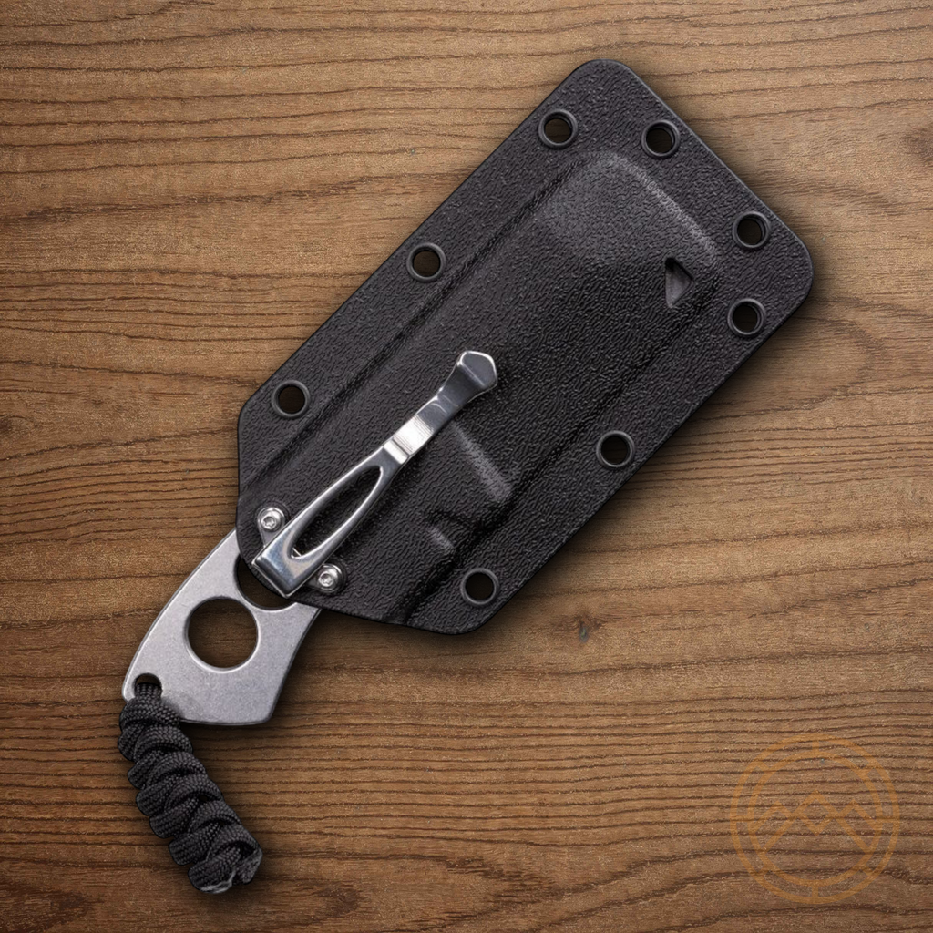 Features: Chisel Blade - Lanyard hole - Black cord lanyard - Black thermoplastic belt sheath