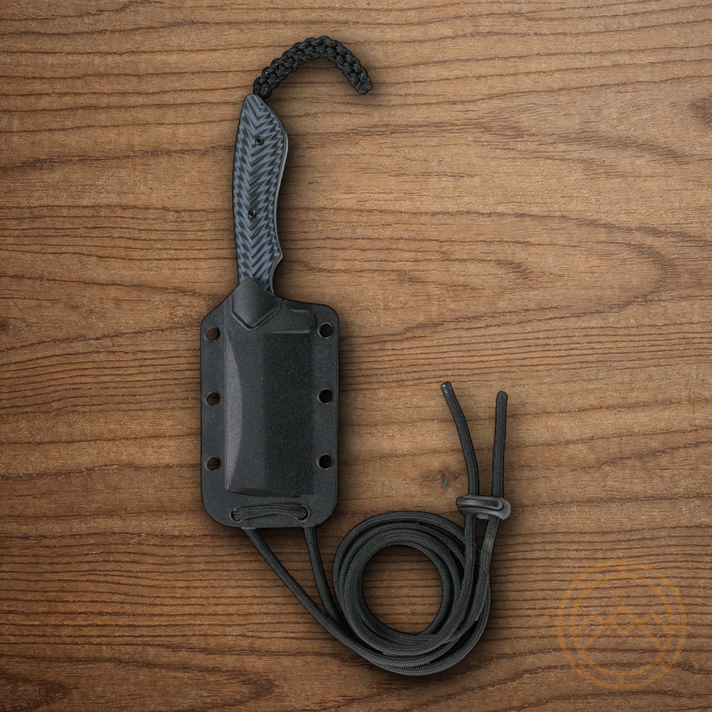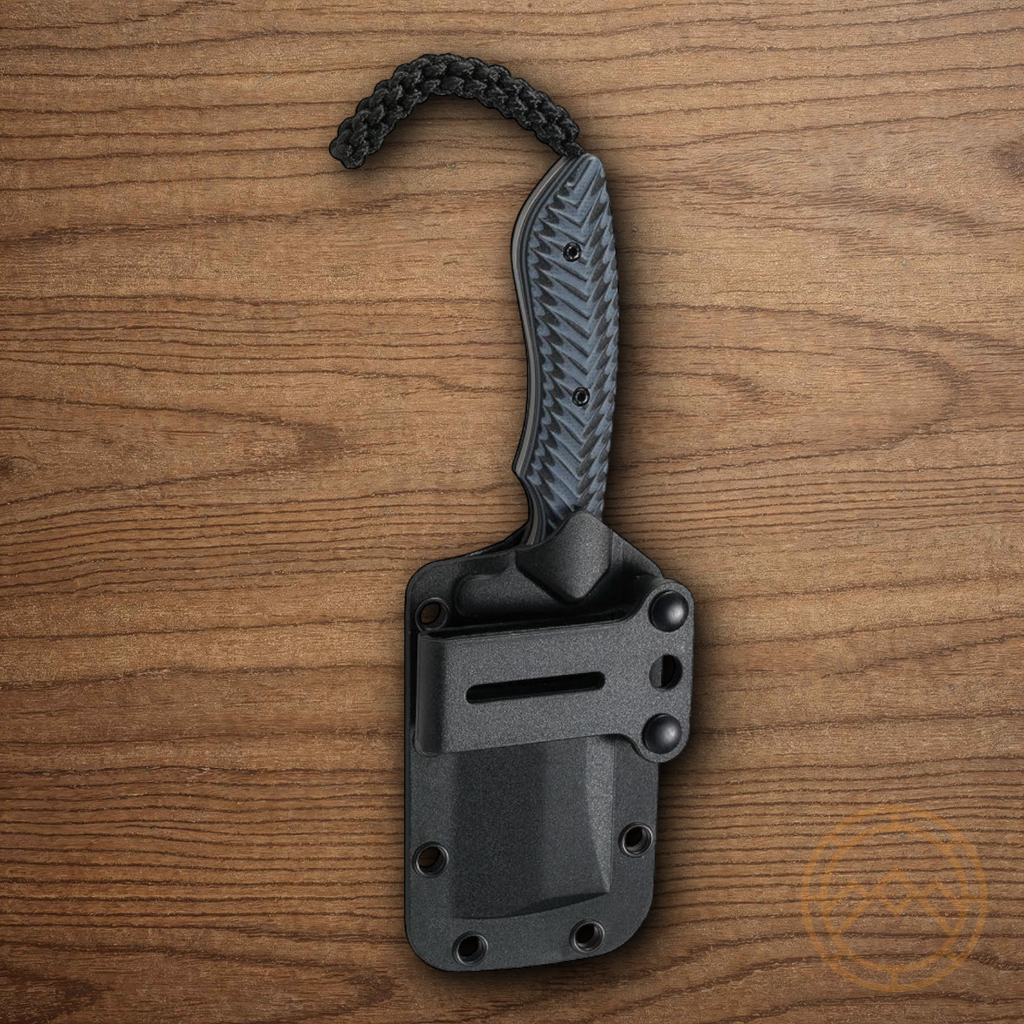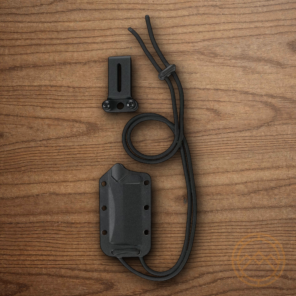 Features: Full tang - Lanyard hole - Small. Pocket – Cleaver - Braided paracord lanyard - Black thermoplastic belt sheath