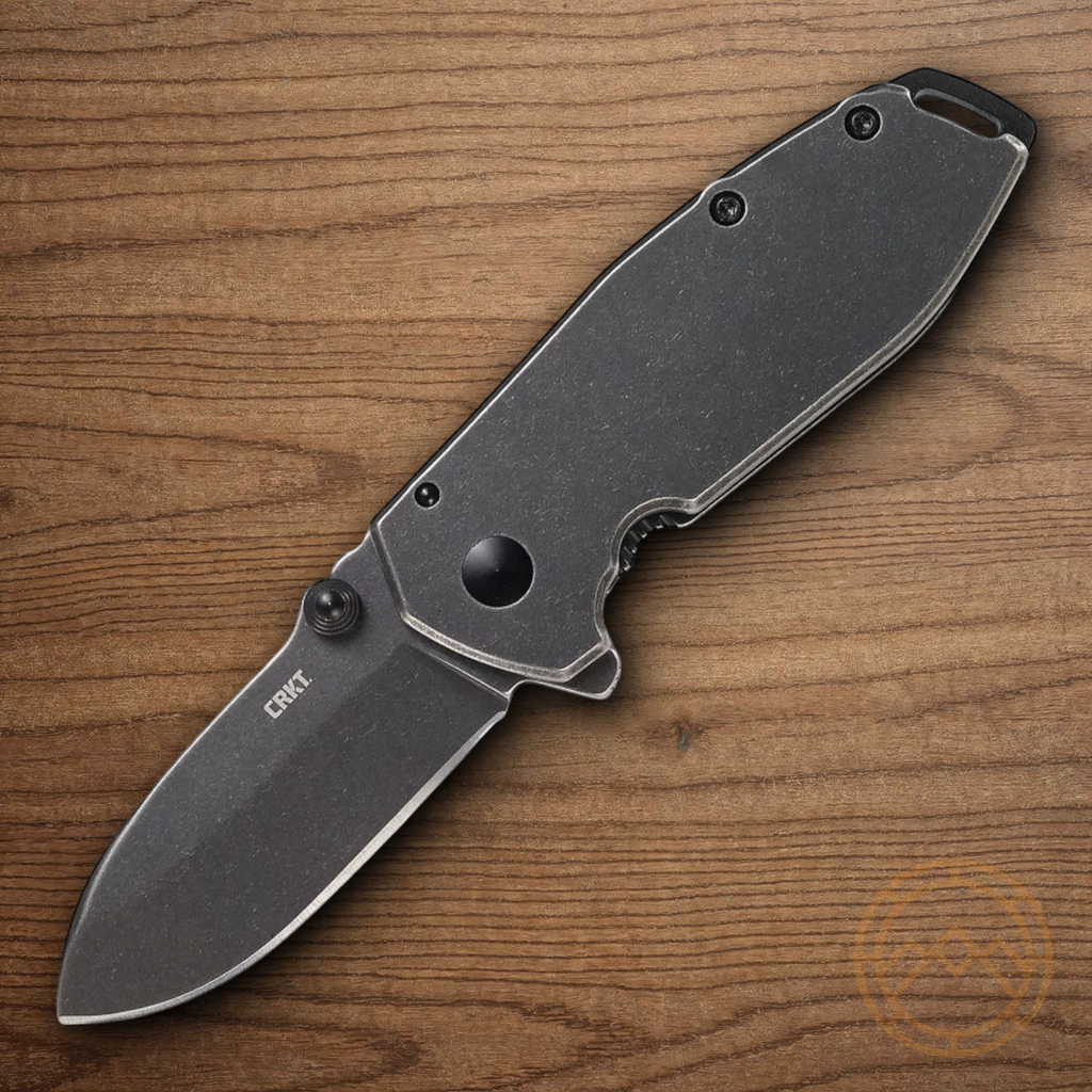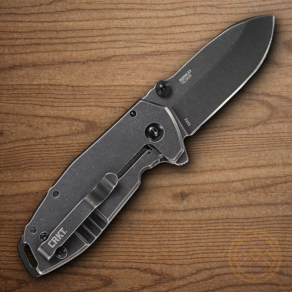 Assisted opening. 3.63" (9.22cm) closed. 2.38" (6.05cm) black stonewash finish 8Cr14MoV stainless blade. Black stonewash finish stainless handle. Thumb stud. Extended tang. Lanyard hole. Pocket clip. IKBS ball bearing. Designed by Lucas Burnley. Boxed.