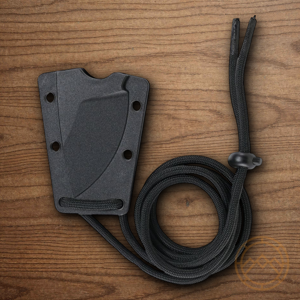 Features: Full, extended tang - Lanyard hole - Finger ring - Black thermoplastic neck sheath