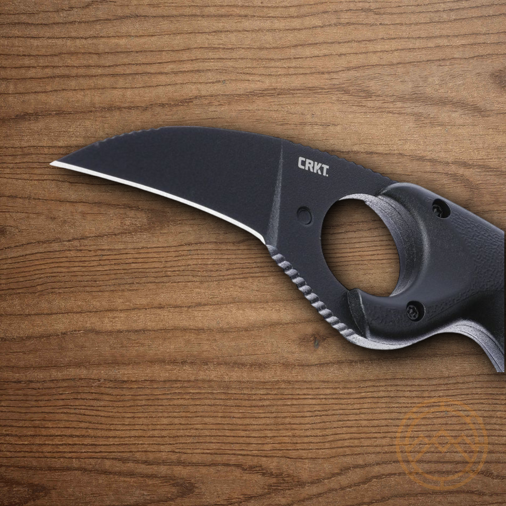 5.63" (14.3cm) overall. 2.38" (6.05cm) black stonewash finish AUS-8 stainless blade. Black GRN handle. Finger ring. Full tang. Lanyard hole. Black thermoplastic neck sheath. Boxed.