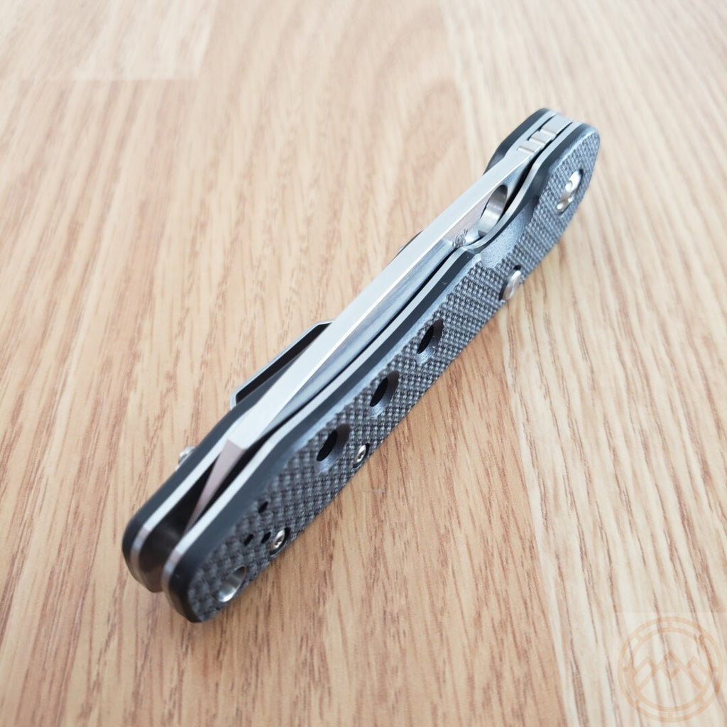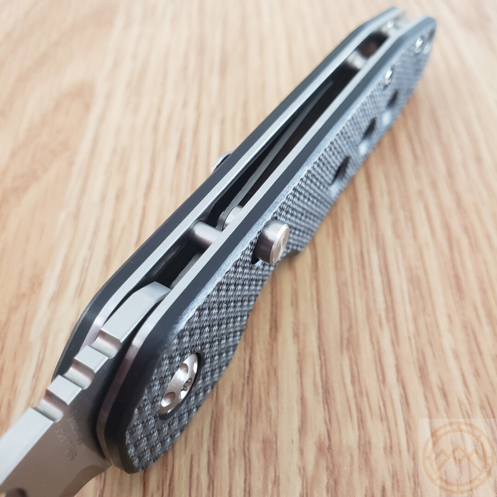 4.5" (11.43cm) closed. 3.5" (8.89cm) satin finish CPM S30V stainless blade. Carbon fiber over G10 handle. Lanyard hole. Pocket clip. Thumb pull. Boxed.
