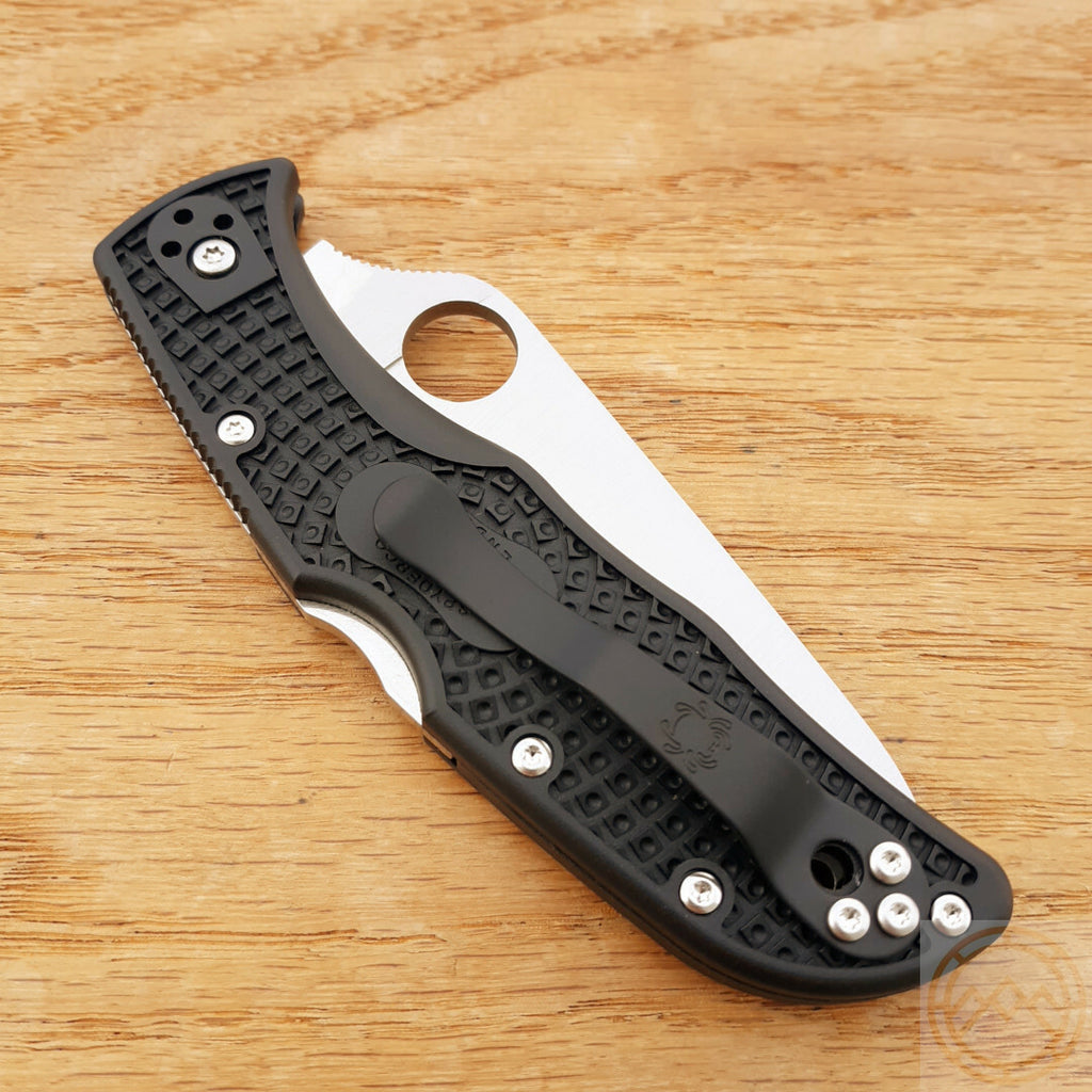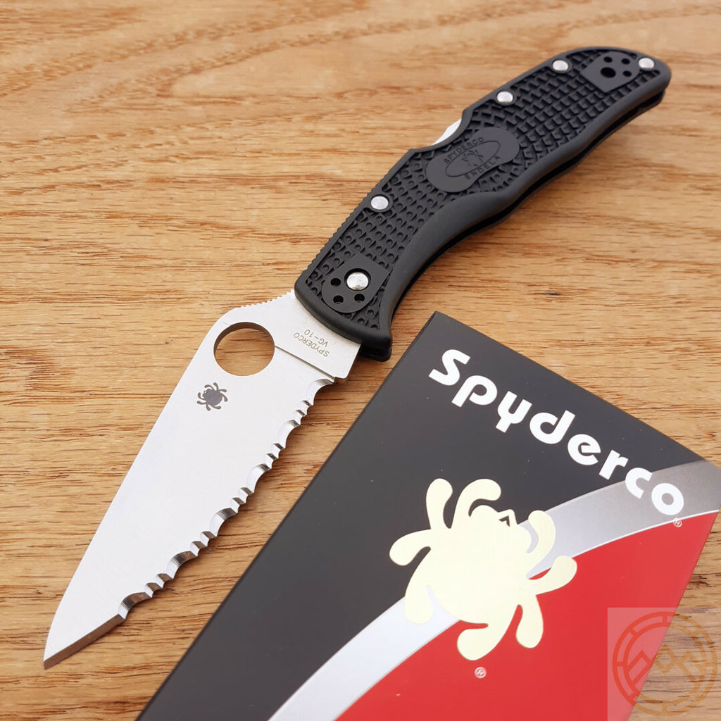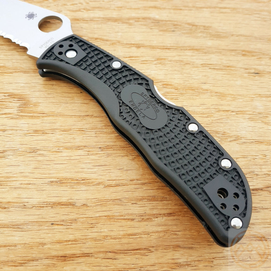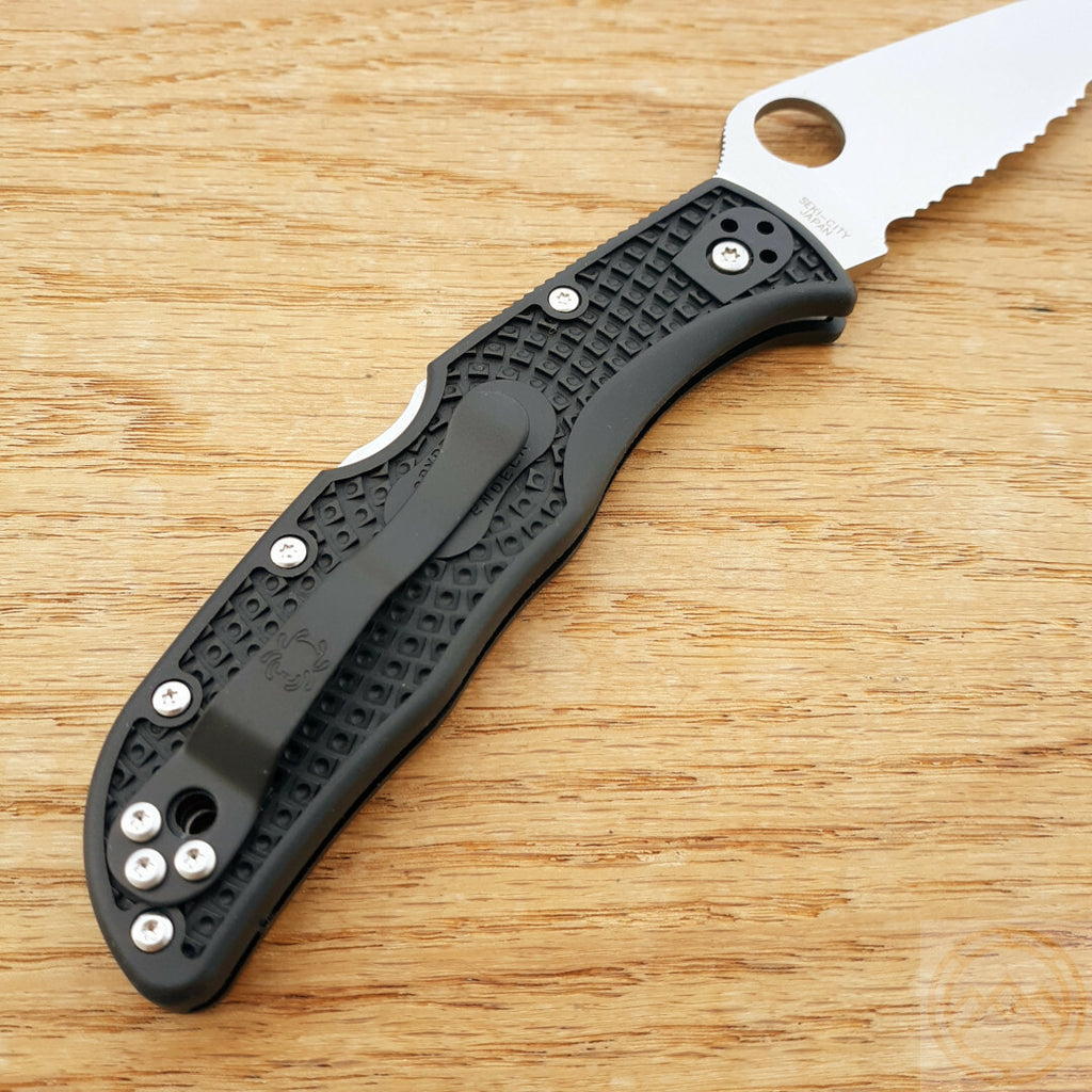 4.75" closed. 3.5" satin finish serrated VG-10 stainless blade. Black bi-directional texture FRN handle. Thumb pull. Pocket clip. Lanyard Hole. Boxed.