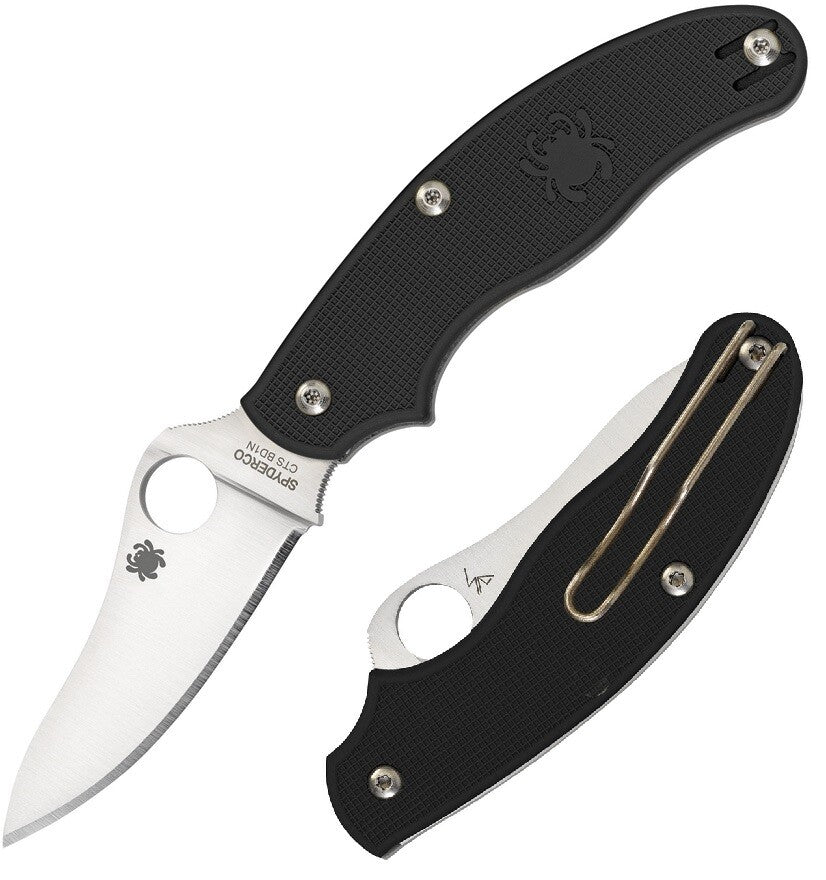 4.13" closed. 3" satin finish CTS-BD1 stainless drop point blade. Black FRN handle. Thumb pull. Pocket clip. Slip joint. Developed for the UK market where there are strict restrictions about blade locking mechanisms. Boxed.