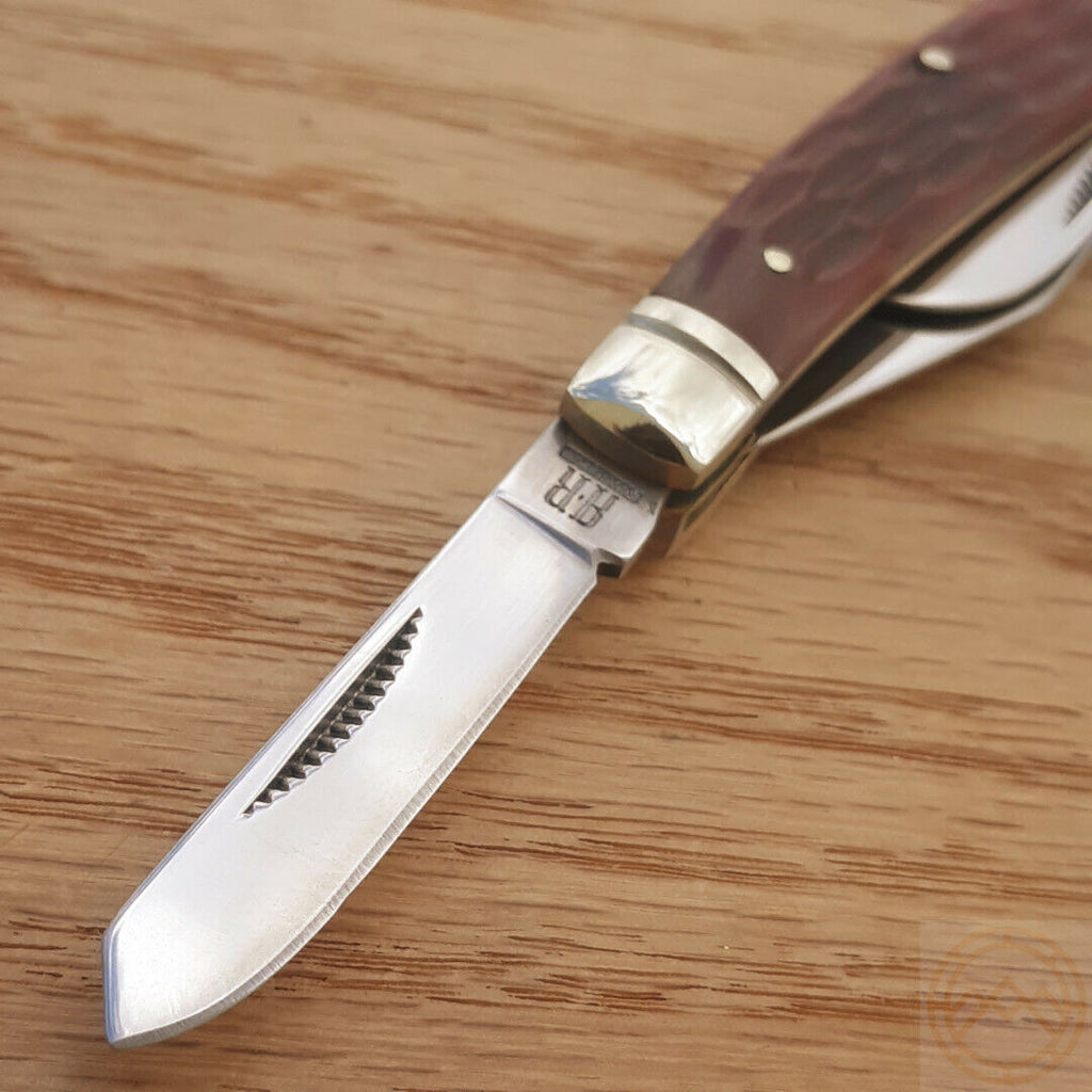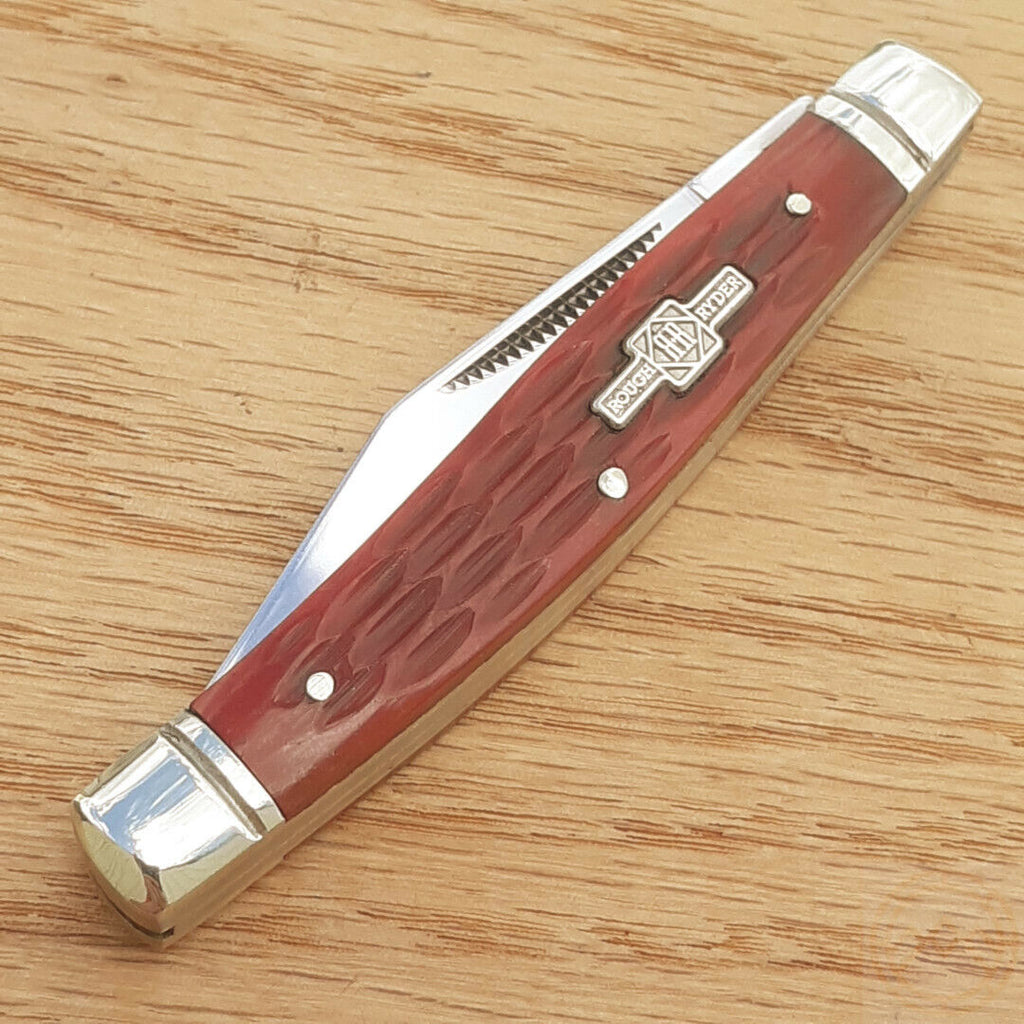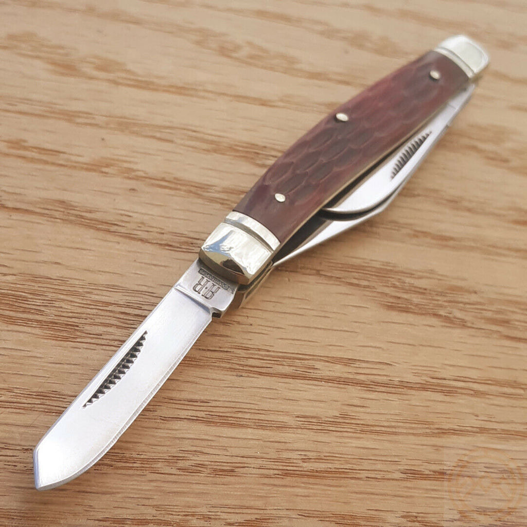 Rough Rider Stockman Pocket Knife 440 Stainless Steel Blades Red Jigged Bone Handle 291