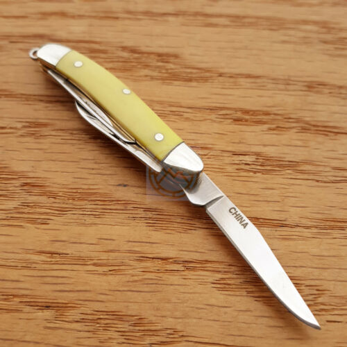 Rough Rider Tiny Stockman Pocket Knife 440 Stainless Blades Yellow Bone Handle R811