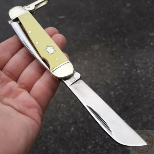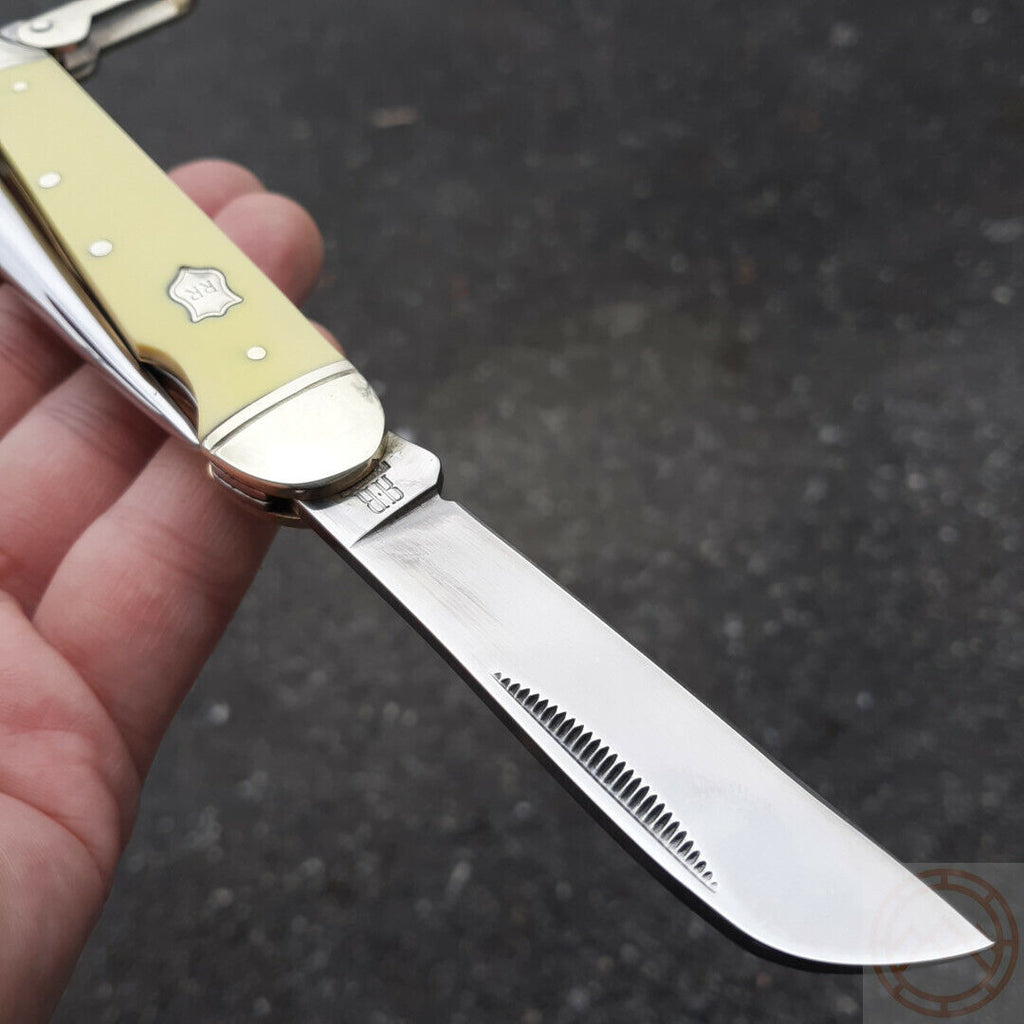 Rough Ryder Marlin Spike Pocket Knife 440 Steel Blades Yellow Smooth Synthetic Handle R897