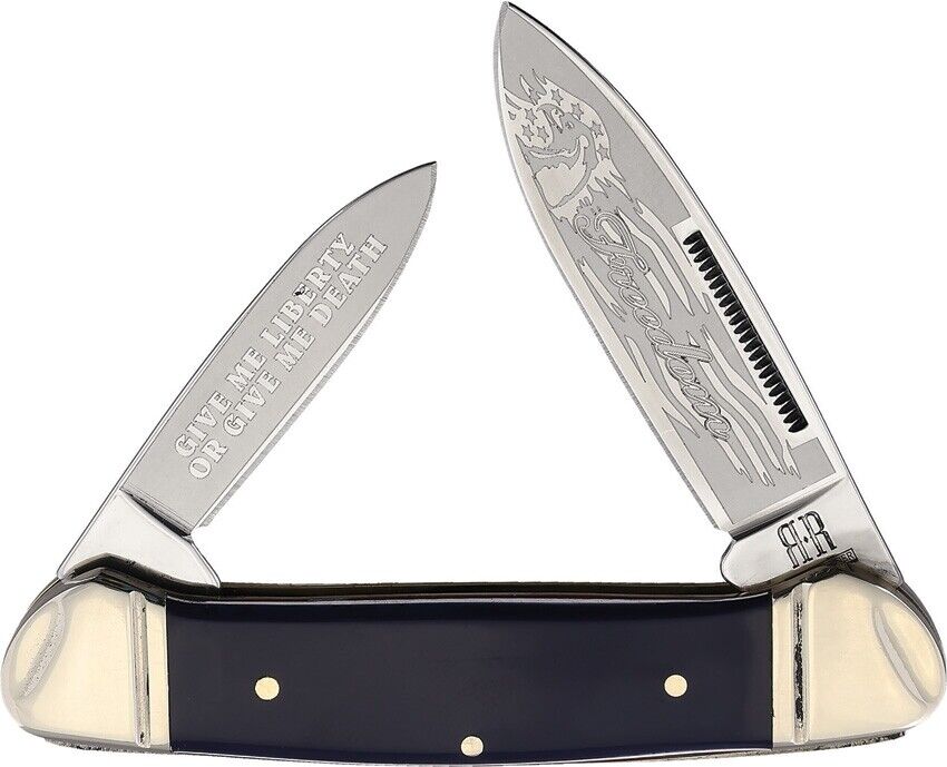 Rough Ryder Patriot Canoe Pocket Knife Stainless Steel Blades Navy Synthetic Handle 2029