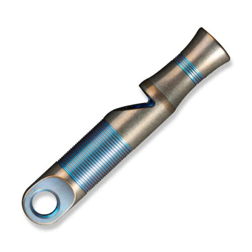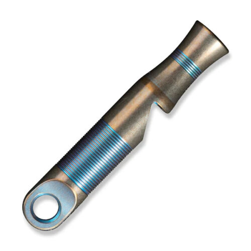 We Knife Co Blue Anodized Finish Titanium Construction Whistle With Brown Paracord Lanyard A05BP