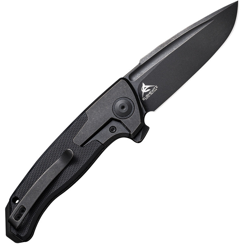 Blade Length: 3.15" (80.0 mm) Closed Length: 4.44" (112.9 mm) Overall Length: 7.59" (192.9 mm) Blade Material: CPM-20CV Stainless Steel Blade Thickness: 0.126" (3.2 mm) Blade Hardness: 58-60HRC Blade Style: Drop Point Blade Grind: Flat Blade Finish: Black Stonewash Handle Material: Black Stonewashed Bolstered 6Al4V Titanium with Black G10 Scales Handle Thickness: 0.49" (12.5 mm)Locking Mechanism: Bolster Lock Pivot Assembly: Caged Ceramic Bearings Pocket Clip: Titanium (Tip-Up, Right/Left Carry) Weight: 3.91 oz. (110.8 g) Designer: Allen Elishewitz.